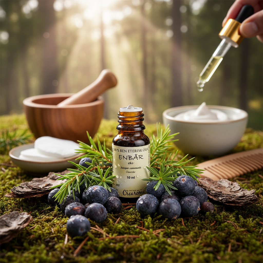 - 🌿 Hudvård för en balanserad hy: För applicering på huden, blanda alltid 1 till 2 droppar enbärsolja med 10 ml av en högkvalitativ vegetabilisk bärarolja (som exempelvis jojobaolja eller mandelolja). Massera försiktigt in på det önskade området för att ge din hud näring och vitalitet.