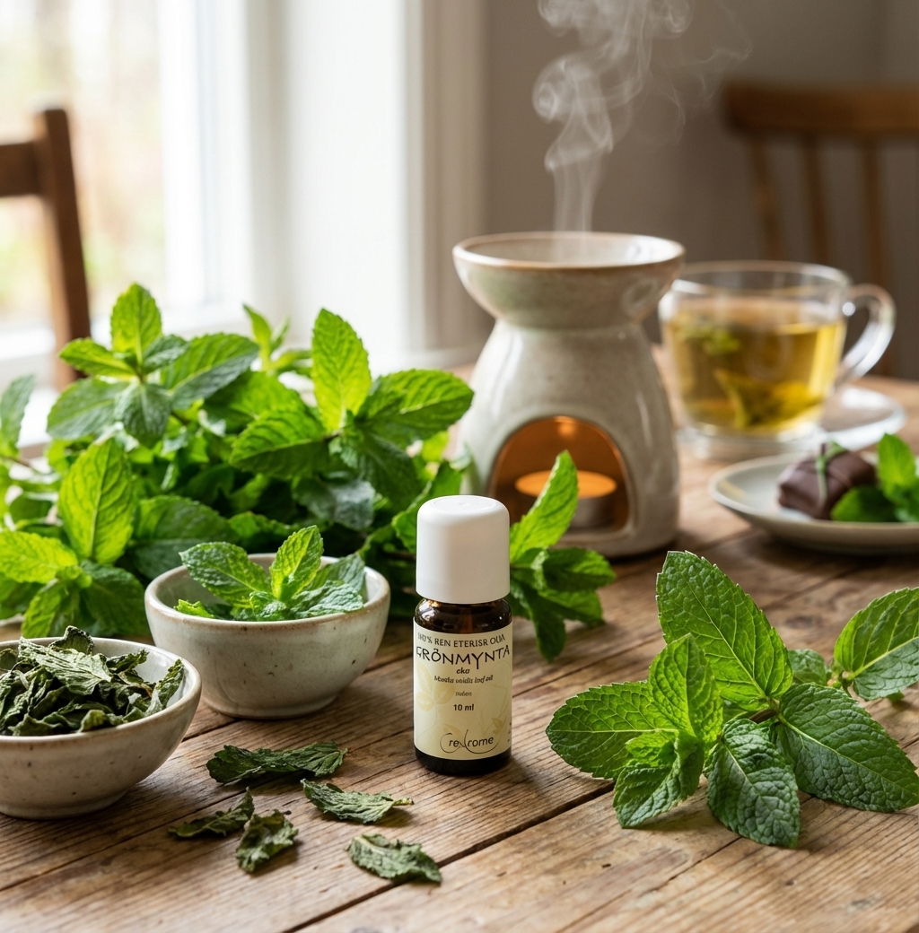 Till skillnad från sin mer intensiva kusin pepparmynta, är grönmynta känd för sin mildare och sötare karaktär. Detta gör den till ett fantastiskt val för en mängd olika användningsområden, både för kropp och sinne. Känner du dig trött eller behöver du en snabb energiboost? En droppe i diffusern kan förvandla ditt rum till en oas av fräschör och klarhet.