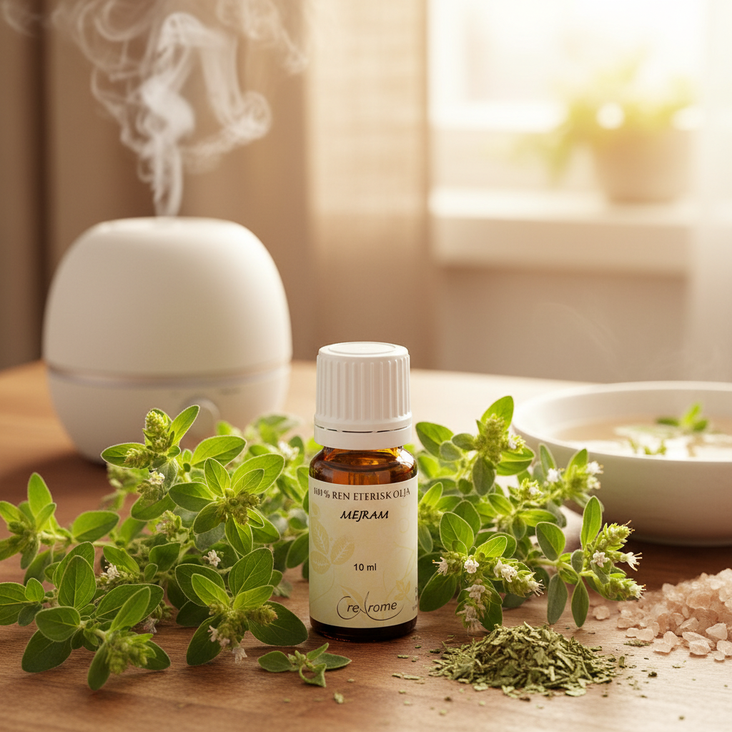 Fördjupa dig i den underbara världen av Mejram eterisk olja, en sann gåva från naturen för ditt välbefinnande. 🌿 Låt den örtiga och varma doften omfamna dina sinnen och skapa en atmosfär av lugn och harmoni i ditt hem.